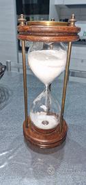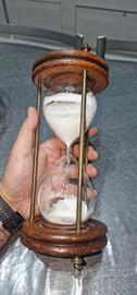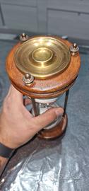 Bellissima clessidra vintage realizzata con materiali di qualità: basi in legno massiccio lavorato e montanti in ottone. Un oggetto dal fascino senza tempo, perfetto per decorare una libreria, uno studio professionale o come pezzo da collezione.