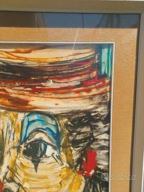 Vendiamo Opera originale firmata “Krimer”, pseudonimo di Cristoforo Mercati, figura significativa del panorama artistico e letterario italiano del Novecento, attivo in particolare nell’area versiliese. Il dipinto, realizzato a olio su tela, raffigura un clown malinconico, soggetto ricorrente nella produzione dell’artista, qui sviluppato in un formato importante che consente una resa più articolata e strutturata. La composizione evidenzia una forte componente espressiva: il volto segnato, lo sguardo abbassato e l’uso calibrato del colore — con contrasti tra tonalità fredde dello sfondo e accenti più caldi nel volto — contribuiscono a costruire una narrazione intima, sospesa tra teatralità e introspezione. La firma “Krimer”, chiaramente leggibile, conferma l’autenticità dell’opera e ne rafforza l’interesse collezionistico. 🎨 Dettagli tecnici Tecnica: olio su tela Dimensioni tela: cm 50 x 70 Dimensioni totali (con cornice): cm 69 x 49 x 5 Firma: “Krimer” (in basso) Epoca: metà Novecento (attribuzione stilistica) Cornice con vetro protettivo: presente 🧾 Stato di conservazione Buono stato generale, con naturali segni del tempo compatibili con l’epoca. La superficie pittorica appare stabile. 🚚 Consegna Solo ritiro a mano 📈 Nota collezionistica Le opere su tela di questo formato, rispetto alla produzione più minuta su carta o cartoncino, risultano meno comuni e maggiormente ricercate. Il soggetto del clown rappresenta uno dei temi più riconoscibili e apprezzati dell’artista. ✨ Grazie per aver visitato ViLiv – Vintage Live ♻️ Ogni oggetto che trovi qui ha una storia, un passato e una nuova possibilità. Crediamo nel valore delle cose che durano nel tempo e meritano di essere scelte ancora. ViLiv – non è solo usato, è scelto ✨✨