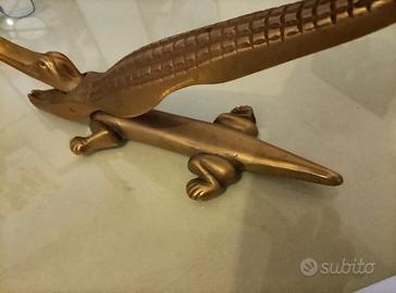 schiaccianoci a forma di coccodrillo in ottone lunghezza 35 cm peso 1,350 kg anni 60