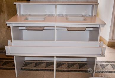 ✔ Postazione cocktail completa – Dotata di speed rack porta bottiglie, vasche porta ghiaccio e spazi per condimenti, per un servizio impeccabile.