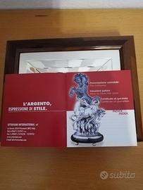 Cofanetto in legno con inserto in argento della ditta Ottaviani argenteria di Recanati. Contiene 2 mazzi di carte Modiano mai utilizzate.