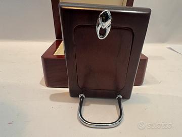 • Piccola cornice coordinata in argento con supporto in legno, ideale per una foto ricordo speciale.