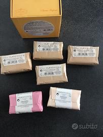Il cofanetto è composto da quattro saponette più due in omaggio, da 100 gr ciascuna.