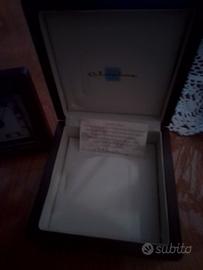 completo cofanetto+orologio brand Claraluna con piccoli segni di usura con rilievi in argerto.