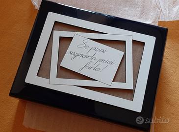 Perfetto per la festa della Mamma: Cofanetto/Box rettangolare in legno laccato colore blu e bianco con scritta "se puoi sognare puoi farlo!" contenente spazzola per abiti e pettine in lamina d'argento, interno in velluto grigio chiaro, in scatola regalo orginale.