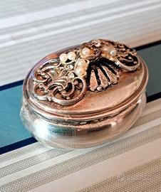 Vendo causa inutilizzo cofanetto placato argento 925, zirconi e perle, buone condizioni, astenersi perditempo.