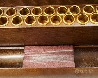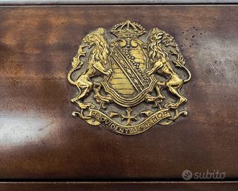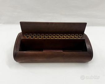 Elegante cofanetto porta sigarette vintage in legno con inserti in metallo. Venduto come in foto, ottime condizioni.