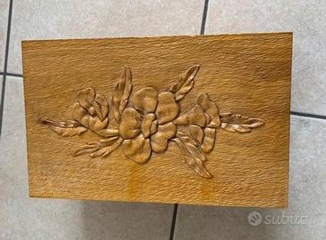 mobiletto portagioie in legno interamente intagliato a mano misure 30 cm. x 19 cm. (h= 18 cm.)