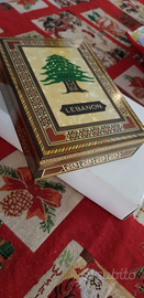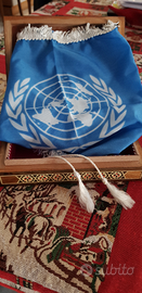 Bellissimo cofanetto portagioie in legno di cedro originale del Libano con all'interno una bandiera dell'ONU originale. Disponibile spedizione