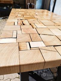 vendo top di coffee table realizzato in diverse essenza di legno ( castagno, cipresso e pino) e resina epossidica. misure 110 x 61 x 4 cm solo top, non include la base.