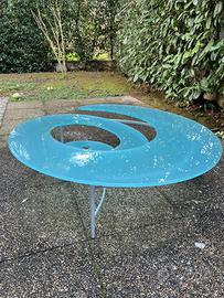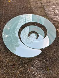 Coffee Table / Tavolino da caffè in vetro temperato opaco, con base in ferro. Diametro cm. 114 - Altezza massima cm. 37. Perfette condizioni.