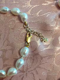 set di collana e bracciale. perle 8mm e 10 mm collana 50 cm più allungador 3 cm e bracciale. 20 cm più allungador. 3 cm lavorato con canutiglia e nudi la parte. dorata. e argento 925 con timbro