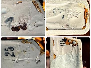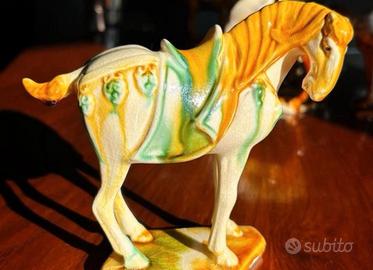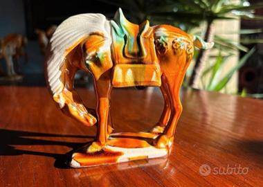Collezione vintage di sei cavalli in stile dinastia Tang, collezionati dai miei genitori intorno agli anni '70, in ceramica e, credo, gesso. Presentano una leggera craquelure e la smaltatura è molto lucida. Sono dipinti a mano e solo uno è bianco. Sono contrassegnati sul fondo, alcuni numerati, e le diverse basi sono visibili nelle foto. Hanno dimensioni diverse, da 14 a 12 cm di altezza, e sono in ottime condizioni. #tang #tặng #tanghorse #madeinchina #vintage #horse #horsecollection #handpainted #warhorse
