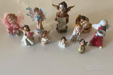 Collezione completa di diversi angioletti, con diverse forme e misure, materiali come gesso, creta e altro.