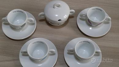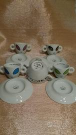 Collezione di tazze Illy Caffè Art Alien' Cup di Davide Byrne, collezione del 2001, nuove, numerate a tiratura limitata, per collezionisti, non scatola originale, su richiesta verranno dotate di scatola regalo, originali, ideali per regalo - 4 tazzine più 4 piattini - 1 zuccheriera - non scatola originale Particolari tazzine caffè a due manici rappresentanti le orecchie degli alieni La zuccheriera è l' astronave Spedizione e pagamento con Tutto Subito a carico dell'acquirente