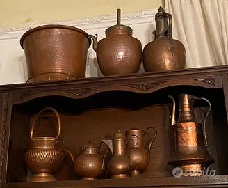 Vendo collezione di circa 30 pezzi (pentole, brocche e suppellettili) in rame mai usate, tenute in casa come arredamento,