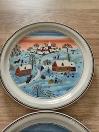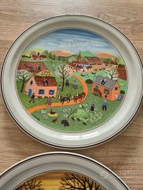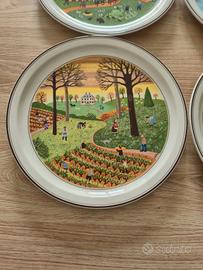 Set di piatti da collezione decorativi, rappresentanti le quattro stagioni in stile naif contemporaneo dell'artista Gérard Laplau per Villeroy & Boch. Articolo vintage anni '80. Nuovi, diametro 23,5 cm. #thefourseasons #quatresaisons #vierjahreszeiten #naif #painters #vintageanni80