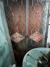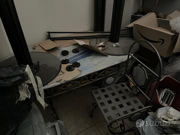 vetrina in ferro e marmo rosa Tavolo tondo con piano in vetro Tavolo da giardino in marmo blu