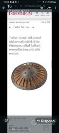 Turchia: Un raro e antico scudo rotondo in vimini degli Ottomani, chiamato "kalkan", ricoperto di ferro. XVII/XVIII secolo.