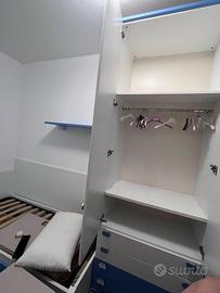 Tutto già smontato. Disponibile il trasporto a pagamento. Questa cameretta l'abbiamo acquistata da Colombini, è di ottima qualità, in 3 piccoli punti presenta segni di umidità, per il resto in ottime condizioni.