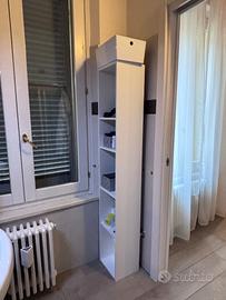 Mobile bagno alto e stretto colore bianco con 5 ripiani, perfetto per organizzare asciugamani, prodotti per il bagno, cosmetici o accessori.