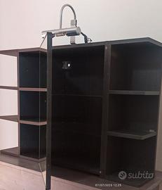 Vendo mobile bagno in colore noce con anta a specchio con 3 ripiani interni di cui 2 in vetro, compresa lampada in acciaio a led completa.