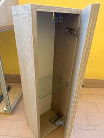 Colonna bagno color beige chiaro con maniglia. Mensola interna in vetro. Misure: - 25 larghezza - 21 profondità - 80 altezza Ritiro solo a mano