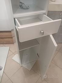 vendo colonna bagno in ottimo stato. girevole, dove su un lato c'è lo specchio, su un altro i ripiani, sull'altro il gancio per il porta asciugamano e sul quarto lato la possibilità di aggiungere i ganci appendi accappatoio. altezza 188cm x 35x35
