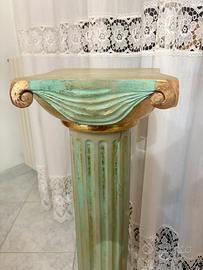 Vendo colonne decorative in legno, VENDIBILI SEPARATAMENTE, dipinte color verde acqua con dettagli dorati, stile classico con scanalature verticali.