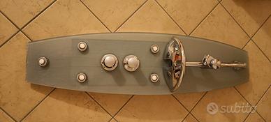 colonna doccia da fissare a parete con frontale in cristallo temperato, rubinetterie cromate, erogatore termostatico regolabile, getti orientabili, soffione, e asta portasoffione