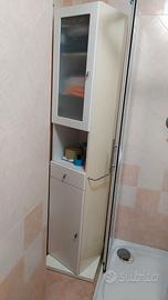 mobile a colonna girevole colore bianco con specchio su un lato due appendi accappatoio e appendi asciugamani. misure altezza 180cm. davanti 34,5cm fianco 33cm. base 43cm. per lato.