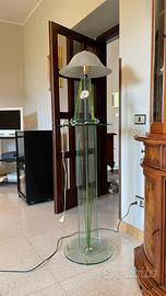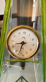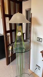 È composto da due pezzi, la colonna in vetro e la lampada in vetro con l’orologio, sono divisibili. La lampada non è al momento funzionante a causa del contatto dei fili.