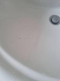 Colonna lavamani in ceramica Dolomite con delle scheggiature interne al lavabo. Già smontata