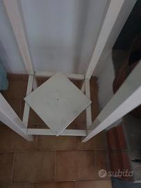 Colonna decorativa o portavaso in legno laccato bianco, ideale per sostenere piante, telefoni o modem in vari ambienti della casa.