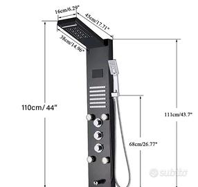 Questo pannello doccia è costruito con acciaio inossidabile SUS304 di altissima qualità. Ha pioggia, soffione a cascata, doccia, spruzzatore per idromassaggio da massaggio, uscita acqua a 5 vie. Immergiti in un'esperienza doccia davvero rilassante e goditi lo stile moderno di questo pannello doccia dal design accattivante.