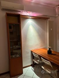 Vendo colonna d'arredo in legno (no truciolato) con mensolone dotato di faretti. Color noce. Ripiani in cristallo. h 230 l 49 p 29. Lunghezza mensolone 150. Ideale per arredare ingresso o angoli studio. Ritiro a mano.