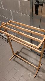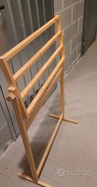 Colonna porta asciugamani in legno chiaro con 4 barre reclinabile, misura 100cm x 40