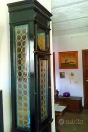 Antica Colonna in legno porta orologio a pendolo fine 800, stile Bologna 600 con vetrate e chiavi in originale. Divisa in due parti sovrapposte con 1 cassetto 1 anta con chiavi, vetri ricoperti antiurto e serrature originali, tenuta molto bene in ottimo stato. Misure h 237 larghezza cm 47 spessore cm32,5 EURO 500