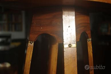 elegante colonna porta vasi in noce periodo Liberty con borchie ed appiques in ottone. Altezza 120 cm. Perfettamente conservata.