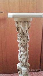 Colonna in materiale tipo avorio con lavorazioni orientaleggianti