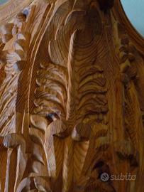 Le colonne in legno di abete (o cirmolo), sono state acquistate a Monaco nel 2012 per un progetto d'interni che poi non è stato più realizzato. Prima del Natale 2019, ero stata contattata da due ragazzi di Bergamo che avevano rilevato un bar da inaugurare l'8 marzo 2020, in occasione della festa della donna e volevano acquistarle per inserirle alle estremità del bancone. Si stavano organizzando per il trasporto...poi, dai primi giorni di febbraio, non ho più avuto contatti da loro, né visti online su whatsapp. Purtroppo quello che è successo dopo lo sappiamo tutti. I capitelli sono scolpiti a mano da artigiani scultori e sono in stile corinzio, con quattro facce uguali e giri di foglie di acanto tutto intorno. Sono asportabili dal corpo delle colonne e sono alti cm 50. Le 2 colonne compresa la base che è alta 12 cm, misurano cm. 200, per un'altezza complessiva di cm 250; il diametro della base è di cm 45. Le colonne al loro interno sono cave. Le incisioni non sono perfettamente uguali, come giusto che siano le sculture scolpite a mano. Sono 2 complementi di arredo che un bravo professionista saprà collocare al meglio. Il colore naturale è biondo anche se, nelle foto senza flash (ultime 3), sembrano di colore sbiadito. Gli oggetti sono come visti e piaciuti, visionabili presso la mia abitazione. Non effettuo la spedizione che sarà organizzata e a carico dell'acquirente. Si offre e si chiede la massima serietà. Le colonne le avevo pagate, trasporto compreso, Euro 2600. Il prezzo ora richiesto non è trattabile in quanto sono svendute per dar loro nuova vita e liberare spazio. Cortesemente contattatemi solo se siete veramente interessati. Grazie!