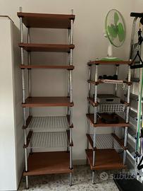 Vendo 2 colonne ben conservate con ripiani legno e acciaio. Misure: 60x46 altezza 210 46x46 altezza 160