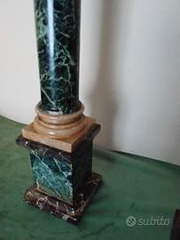 N° 2colonne in marmo risalenti presumibilmente fine XIXsecolo periodo Napoleone III realizzate con tre tipi di marmo: fusto marmo verde alpi, base e capitello marmo beige e marrone. Alezza 47 cm.;larghezza base piede 9cmx9cm.;larghezza base superiore 7 cmx7cm.