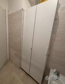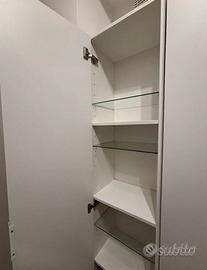 due colonne 40 L 34 P con maniglia 192 H (piu 8 cm di piedini aggiunti per non farle toccare a terra) colore bianco con ripiani alternati vetro e bianco regolabili Vendibile anche singola