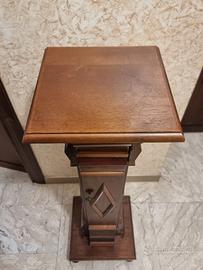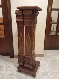 Colonnina in legno in stile classico a base quadrata, utile come portavaso, con sportello apribile sul lato anteriore e tre ripiani interni. La base poggia su quattro sfere di legno lavorate. Misure base: 26X26 cm; misure piano superiore 22X22. Ottime condizioni.