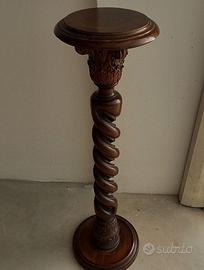 Colonnina da arredo o da appoggio in legno intarsiato , piatto da 30 cm di diametro e altezza 120 circa.
