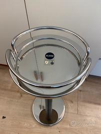 Colonnina porta rinfrescatore, porta secchiello ghiaccio, con asta in acciaio laccata con resina epossidica "Testa di Moro" e piano d’appoggio Texturizzato. Alessi 5059 - inox 18/10, h 64cm diam 24cm. Prezzo del prodotto nuovo 400 euro. Con 50 euro in più fornisco anche secchiello 5052 in buone condizioni. Prezzo del secchiello nuovo 250 euro.