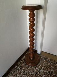 colonnina tornita in legno porta vaso, trespolo, piedistallo, tinta noce base 30 cm altezza 93 cm, stile Vittoriano.