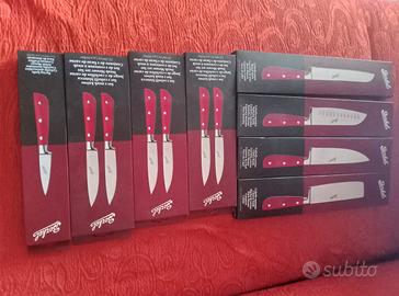 scatole mai aperte nuovi ,1 spelucchino,6 da carne,1 mannaia,1da cucina,1santoku,1 da pane in totale 11 coltelli