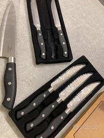 -1 coltello da cucina lama lunga come da foto MAI utilizzato -6 coltelli da bistecca MAI utilizzati come Da foto -set 5 bacchette originali cinesi